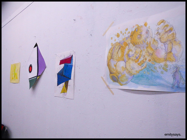 果然有!最後一個小時大家把自己的作品掛上牆,輪流介紹[自己],每個人都說個不停耶,回家之後我跟大B說,我可以講半個小時都講不完。